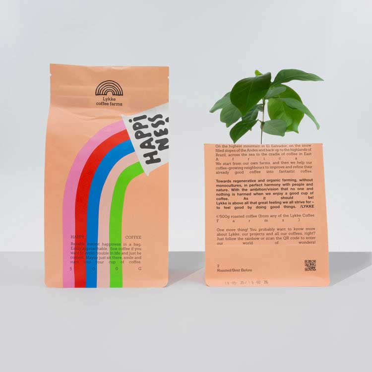 Lykke coffee bags contain perfectly roasted coffee beans, but also so much more. Like an idea of changing the coffee industry for the better, or coffee projects all over the world to spread sustainable farming practices. And how about a biodegradable bag?